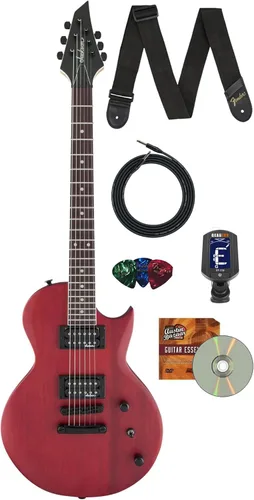 JUEGO SUAVE: Esta guitarra de longitud de escala de 24.75" viene con un cuerpo de caoba, mástil de arce atornillado con refuerzo de grafito y junta biselada, y cabezal Jackson 3x3 (tres arriba, tres abajo) AT-1 para velocidad y juego suave. DIAPASÓN DE AMARANTO: Diseñado para un juego flexible, el diapasón de amaranto de radio compuesto de 12"-16" está curvado para tocar acordes fácilmente cerca de la cejuela, aplanándose para tocar solos ardientes sin temor a que se produzcan trastes ahogados durante los bendings. CONTROLES FÁCILES: Los controles únicos de volumen y tono, más el interruptor de selección de tres vías, y el puente estilo TOM con radio compensado de Jackson con pieza de cola anclada ofrecen un control fácil al cambiar entre sonidos. PASTILLAS DE ALTA SALIDA: Las pastillas duales Jackson de alta salida humbucking y las clavijas Jackson selladas ofrecen afinación y estabilidad firmes como una roca. Todo en una caja: el paquete incluye cable de instrumento, correa, afinador, púas y DVD de guitarra Austin Bazaar