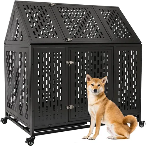 Jaula indestructible para perros de 44 pulgadas, resistente y de alta ansiedad, a prueba de golpes, jaula de techo puntiaguda de metal para perros