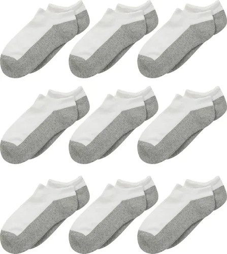 Tabla de tallas de calcetines Jefferies Desde el patio de juegos hasta el gimnasio, los calcetines sin costuras Sport Low Cut 9 Pack son una elección perfecta. Se vende como un paquete de nueve pares. Sin cojín de corte bajo ligero con dedos sin costuras para mayor comodidad. Puños acanalados que ayudan a los calcetines a permanecer puestos. Tacón cosido en Y. 80% algodón, 17% nailon, 3% elastano. Lavar a máquina en frío, secar en secadora a baja temperatura. Importado.