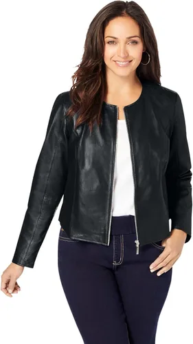 Jessica London Chaqueta de cuero sin cuello de talla grande para mujer