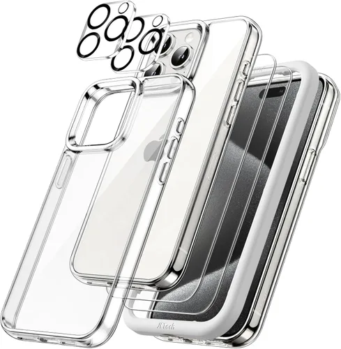 [Protección completa 5 en 1] Hay 2 protectores de pantalla con una herramienta de alineación, 2 protectores de lente de cámara y una funda antigolpes, proporcionando protección completa para tu teléfono. Fácil instalación con kits de accesorios incluidos [Parte trasera transparente y protectora] La funda del teléfono está hecha de marco de TPU flexible y parte trasera de policarbonato duro, protegiendo tu teléfono de caídas y arañazos. Y siempre puedes admirar la belleza original de tu teléfono a través de la parte trasera que no se amarillea Vidrio templado de alta calidad: tanto el protector de pantalla como el protector de lente de cámara están fabricados con material de dureza 9H. HD transparente y ultra sensible como usar tu teléfono desnudo, manteniendo la pantalla y la lente lejos de arañazos diarios [Enfoque en los detalles] Los bordes elevados alrededor de la pantalla y la cámara resisten los arañazos en la superficie. El diseño único de puntos puede evitar que las marcas de agua feas se acumulen dentro de la funda Diseño de ajuste ceñido: ajuste preciso para iPhone 15 Pro Max de 6.7 pulgadas. Compatible con carga inalámbrica. Y los recortes perfectamente alineados permiten un fácil acceso al altavoz, cámara, botones y otras características