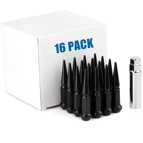 JiiinMiiin Tuercas de lengüeta de espiga extendidas - Rosca de 10x1.25mm - Acabado cromado brillante - para ATV y UTVS. Este anuncio es para un juego de 16 tuercas de sujeción, suficientes para un vehículo de 4 tuercas. Fabricado con acero forjado en frío de alta calidad y tratado con calor para mayor resistencia y durabilidad. Son compatibles con la mayoría de las ruedas céntricas de tuerca del mercado de repuesto sin cubiertas de tuerca de lengüeta. El diseño de construcción de una sola pieza es más seguro y confiable que los diseños de dos piezas. Se incluye una llave de enchufe extra larga para una fácil instalación/extracción. Paso de rosca - 10x1.25mm RH métrico; Tipo de asiento - asiento de bellota de 60 grados (acampanado); Tamaño de llave hexagonal - 3/4" (19mm); Longitud de la punta - 1.5" (38mm); Longitud total - 3.5" (89mm) ¡Dale a tu vehículo todoterreno o UTV un aspecto agresivo y de guerrero todoterreno! Viene como un juego de 16 tuercas de llanta, con varios colores para que coincida con cualquier esquema de color.