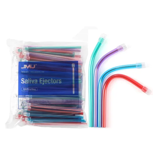 JMU Eyectores de saliva dentales desechables, 100 piezas, puntas de succión de evacuación flexibles, colores surtidos