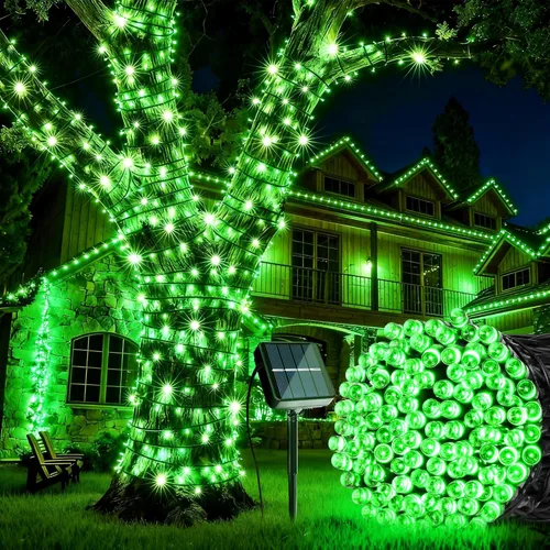 Joomer Luces Solares Navideñas en Cadena, 39 pies, 100 LED, luces impermeables para exteriores con 8 modos de luces centelleantes para jardín, Verde