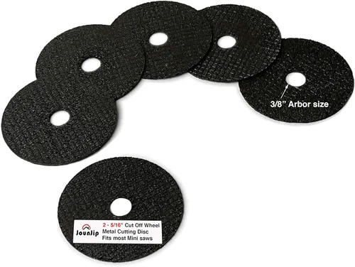 Haz cortes precisos y suaves - la rueda de corte de metal corta a través de acero, bronce, latón, tuercas, pernos, tornillos, metales ferosos y no ferosos Ruedas abrasivas y discos con resina de fibra de vidrio que proporcionan estabilidad duradera y resistencia a la rotura Compatible con mini sierras de inglete de 3/8 pulgadas, sierras de corte, sierras de sobremesa y funciona como accesorios de herramientas rotativas 6 hojas de sierra de repuesto de 2 5/16 pulgadas de diámetro x 1/16 pulgadas de grosor KERF x eje de 3/8 pulgadas de pulgada * Siempre tome las precauciones de seguridad adecuadas, use el protector de la cuchilla y use el equipo de seguridad -se pueden emitir chispas al usar este accesorio