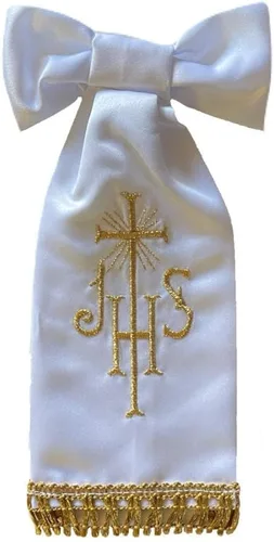 Vela blanca de 1.8" x 5.8" Pequeña Biblia completa española 4 1/2 pulgadas de largo x 1 1/2 pulgadas de ancho 6 pulgadas de alto Pin de solapa: - Pin de 1" - Espalda de embrague de mariposa - Imágenes religiosas en la cara del alfiler Rosario: - Rosario recubierto de oro - 18 1/2" longitud completa - 12 1/2" apertura - 1 1/2" crucifijo - Extremadamente ligero Banda de brazo: 9" x 5"