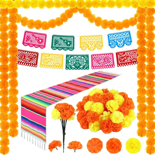 Pregunta sugerida sobre Juego de 112 piezas de decoración del Día de los Muertos, 100 caléndula artificial a granel, 2 guirnaldas de caléndula artificial de 5 pies, 9 ¿Este producto sí me sirve para lo que necesito?