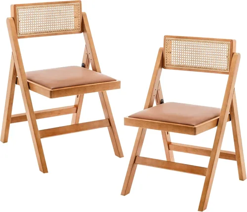 Juego de 2 sillas de comedor plegables de cocina, sillas de mesa de ratán modernas con silla plegable de cuero de roble para sala de lectura, boda,