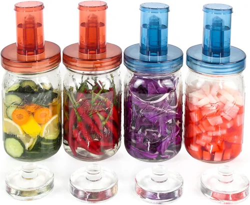 Este kit de fermentación viene con 4 pesos de fermentación de vidrio y 4 tapas de fermentación, que son perfectos para hacer una variedad de alimentos fermentados, como chucrut, kimchi y más. También son compatibles con frascos de boca ancha, por lo que es fácil fermentar tus alimentos favoritos en el frasco de tu elección, lo que te permite preservar el contenido nutricional y el sabor de tu comida con facilidad.