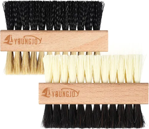 Juego de cepillos limpiadores de zapatos de doble cara jabalí y cerdas de plástico con paño de microfibra