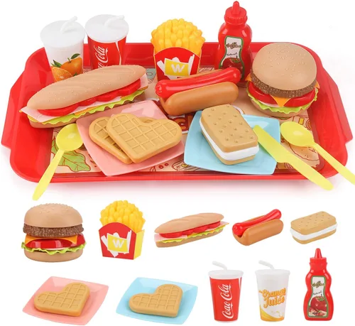 【Juego de comida de simulación para niños】: El juego de comida de simulación incluye 15 piezas de comida y herramientas de simulación. ¡Tu bebé adorará este juguete de juego de rol y disfrutará de horas de diversión! 【Juguetes educativos para niños y niñas】: Todos los accesorios para alimentos mejorarán la coordinación ojo-mano y la flexibilidad de las manos de tu bebé. Los accesorios coloridos atraerán a los niños, lo que les permitirá aprender sobre el color y la estructura de los alimentos. Juguete de rol: a los niños y niñas les encanta imitar a sus padres. Con este juego, pueden fingir ir de compras, cocinar una comida y servir a su familia o amigo una deliciosa comida. Aprenda a llevarse bien con su amigo y aprenda a compartir. También permita que su imaginación vuele libre con esta gran variedad de alimentos para elegir. 【Gran idea de regalo para niños】: Es un gran regalo para cumpleaños, días festivos o aniversario, ¡varios alimentos de comida rápida vívidos para juegos de rol atraerán a los niños! Apto para manos pequeñas de niños, un buen juguete para niños y niñas a partir de 3 años. Solo debe utilizarse bajo la supervisión directa de un adulto por favor. 【Seguridad y control de calidad】: Están hechos de materiales seguros y ecológicos, el diseño de borde proporcionará la máxima seguridad para tus hijos. Cada juguete está hecho de plástico grueso y resistente que puede soportar muchos golpes de los más pequeños. Puedes estar seguro al comprarlo.
