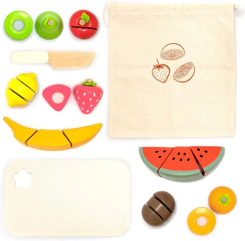 Juego de frutas de corte creativo: el juego de frutas para cortar umu es un juego de 17 piezas que viene con un cuchillo de madera. Las piezas bellamente pintadas cuentan con detalles realistas, proporcionando una experiencia de juego divertida y atractiva para niños pequeños y niños a partir de 3 años Atractiva caja de madera: este juego de frutas para cortar para niños incluye una atractiva bolsa de tela que almacena todas las piezas, por lo que es conveniente para viajar y organizar. La caja de madera añade un toque de autenticidad y mejora la experiencia general de juego Enseña conceptos de parte y conjunto: nuestro juego de alimentos cuenta con pestañas autoadhesivas que mantienen las piezas juntas y se "cortan" con un sonido crujiente satisfactorio, simulando el proceso de cortar frutas. Esta característica interactiva ayuda a enseñar a los niños los conceptos de parte y todo, promoviendo las habilidades tempranas de desarrollo matemático de una manera lúdica. Regalo ideal para niños de 3 a 5 años: el juego de frutas para cortar es una excelente opción de regalo para niños de 3 a 5 años. Fomenta el juego imaginativo, mejora las habilidades motoras finas y proporciona una alternativa sin pantalla para la diversión y el aprendizaje. Combínalo con el juego de alimentos Melissa & Doug Play Time Produce Fruit Play para una experiencia de juego más completa El estándar de oro en el juego infantil: durante más de 20 años, el juguete de madera umu se ha comprometido a crear juguetes bellamente diseñados que despiertan la imaginación y la creatividad en los niños. El juego de frutas de corte es solo un ejemplo de nuestra dedicación a proporcionar experiencias de juego atractivas y de alta calidad.