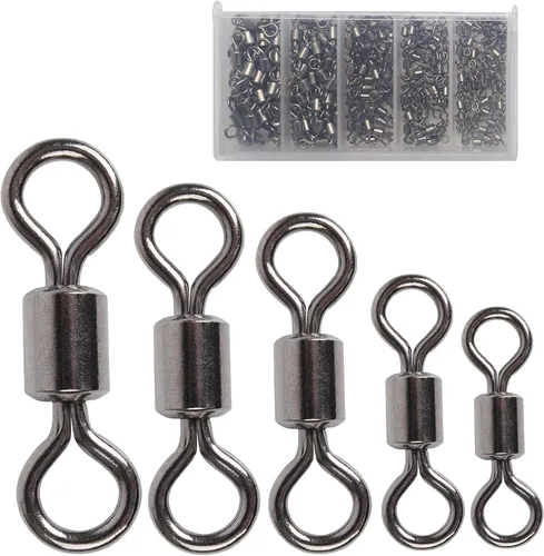 Lo que obtienes: 210 piezas giratorias de pesca perfectamente empaquetadas en una pequeña caja de plástico compartimentada duradera (3.8 x 1.9 x 0.6 pulgadas), que van en 5 tamaños, 40 piezas cada una para 2#, 4#, 6#, 7# y 50 piezas para tamaño 8#. Rotación de alta velocidad: la rotación suave de 360° está diseñada para liberar la fuerza de arrastre de los peces y evitar la abrasión de la línea. Conector de línea de pesca: Una forma popular de conectar líneas principales y sublíneas, lo que hace que sea más conveniente cambiar sus sublíneas; proteja sus líneas principales incluso con un fuerte tirón. Pequeño pero increíblemente fuerte: construido para ser fuerte y duradero para todo tipo de pesca. Alto rendimiento en agua dulce y salada, pesca en alta mar y en hielo, captura de lubina, panfish, salmón, lucio, etc. Cuerpo suave: construido con acero inoxidable, anillo de pulido suave (sin bordes afilados) evita cortar su línea de pesca, rotación ultra suave evita enredos no deseados.