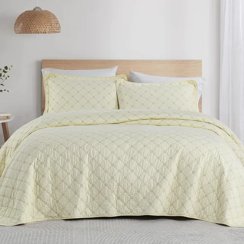 Finlonte Juego de edredón tamaño King – Juego de edredón de algodón tamaño King, colcha acolchada ligera y suave, juego de ropa de cama de edredón