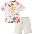 Yruiz Conjunto de traje hawaiano para niño pequeño, camisa floral de verano con corbatín + pantalones cortos