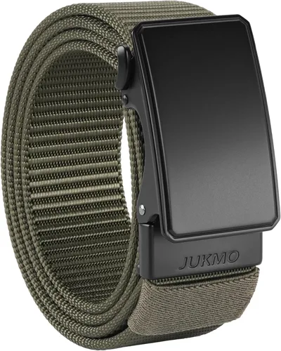 JUKMO - Cinto de nailon con trinquete de 1.5" para hombre, cinturón de nailon con hebilla deslizante para jeans, sin orificios, ajustable para un