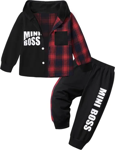 KANGKANG Ropa para bebé niño pequeño, sudadera con capucha de manga larga con botones y pantalones con estampado de letras, trajes de otoño e