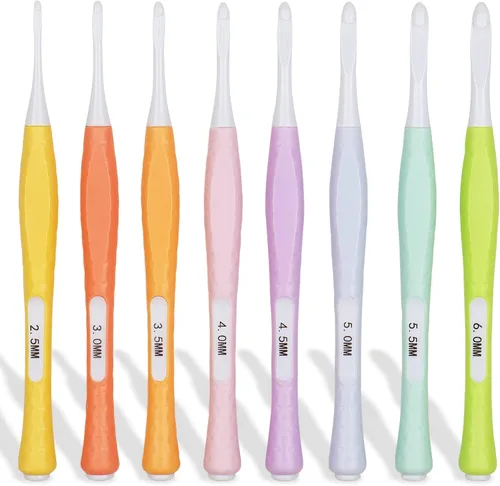 Ganchos de ganchillo en línea para principiantes: este gancho de ganchillo tiene gancho en línea y agarres suaves de silicona ergonómicos antideslizantes. Los ganchos de ganchillo en línea tienen un gancho más profundo que agarra fácilmente el hilo para ayudarte a tejer agarres mucho más suaves y cómodos. Los ganchos de ganchillo de agarre suave a menudo son recomendados por los instructores de ganchillo debido a que ayudan a los principiantes a mantener mejor la tensión. Ganchos de ganchillo suaves y duraderos: cada gancho de ganchillo de plástico para ganchillo está cuidadosamente bien hecho con silicona de calidad y resina ligera, el juego de ganchos de ganchillo es suave y el hilo se desliza con facilidad sin engancharse ni dividir el hilo. Las cabezas y las asas de los ganchos de ganchillo para ganchillo están completamente conectadas, por lo que los dos no se separarán durante el uso. Juego de ganchos de ganchillo sin dolor: la goma suave en los ganchos de ganchillo hace que sea fácil de agarrar, y la superficie plana de prensa del pulgar hace que los ganchos de ganchillo sean fáciles de sostener. El juego de ganchos de ganchillo ergonómico de agarre suave puede ser eficaz para reducir el dolor de muñeca, adecuado para principiantes, manos artríticas y ganchillo que necesitan usar el kit de agujas de ganchillo de plástico durante mucho tiempo. Múltiples tamaños pero portátiles: los ganchos de ganchillo para principiantes contienen 8 tamaños diferentes, cada ganchillo de goma es de diferentes colores y números impresos para una fácil identificación. Los ganchos de ganchillo antideslizantes están hechos con silicona de calidad y resina ligera, son ligeros y fáciles de transportar sin sentirse pesados. Puedes utilizar tu imaginación para tejer todo tipo de creaciones de bricolaje con estos ganchos de ganchillo de plástico a granel en cualquier momento y en cualquier lugar. Regalos ideales: este bonito juego de ganchos de ganchillo tiene colores brillantes y variados que corresponden al color de los dulces y son el mejor regalo para los niños. Nuestro juego de ganchos de ganchillo en línea ergonómicos no solo es adecuado para mamá y abuela, sino también perfecto para niños y niñas principiantes. En el día de San Valentín, Navidad, Acción de Gracias, el kit de ganchos de ganchillo de plástico es un regalo ideal para principiantes y entusiastas del ganchillo.