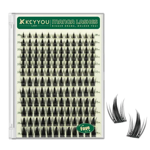 Lightweight & Comfortable Manga Lash Look: Our manga lash clusters are soft, flexible, and lightweight — comfortable for all-day wear with zero irritation. Each lash cluster blends naturally with your real eyelashes, creating a dramatic yet natural false eyelash effect with a signature manga style. No heaviness, no stiffness. 144Pcs Value Pack – Customize Your Look: Each box includes 120 lash clusters in mixed lengths, giving you the freedom to DIY your favorite styles — from everyday natural to bold, voluminous manga lashes. Whether you're new to lash clusters or a pro, this generous pack offers endless possibilities for custom cluster eyelash extensions. Long-Lasting Hold, Day to Night Beauty: When paired with your favorite lash glue, these eyelash clusters stay put for up to 72 hours. They're perfect for any occasion — work, travel, parties, or photoshoots. Combine with a waterproof lash adhesive for smudge-free, sweatproof wear all day long. Beginner-Friendly Application & Removal: Use tweezers to gently pick up a lash cluster, apply a small amount of glue to the base, and place it under your natural lashes. To remove, use an oil-based makeup remover or lash adhesive remover — easy, painless, and gentle on your eyes. Reliable Service, Beautiful Results KEYYOU is committed to providing premium false eyelashes and manga lash clusters that help you feel confident and glamorous. Have questions about our lashes clusters? Contact us we’ll get back to you within 24 hours.