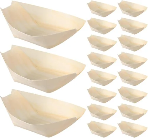 Kichvoe 120pcs Forma de barco tazón de viruta de madera paletas de madera bandejas de madera contenedores de alimentos bandejas desechables paletas