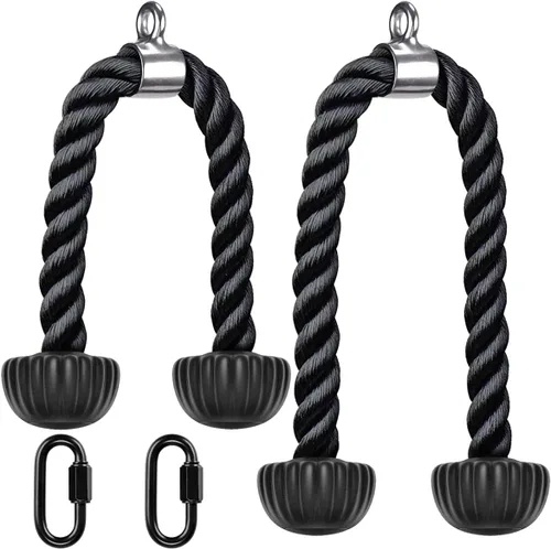 Extremos de goma suave: nuestra cuerda de tracción de tríceps está diseñada con bloques de goma suave en el extremo, utilizando materiales de plástico suave de 40 ° para ayudarte a obtener una mejor comodidad en el entrenamiento y proteger tu mano Alta calidad: nuestra cuerda está hecha de cuerda de nailon pesado que cuenta con una excelente resistencia a la abrasión, alta resistencia y rendimiento duradero que garantiza una utilización duradera. El accesorio giratorio está hecho de acero inoxidable 304 antioxidante permanente. Peso limitado de la cuerda de tríceps: 900 LB MÚSCULOS DE EJERCICIO PERFECTOS: Se puede utilizar para entrenar sus tríceps, bíceps, espalda, hombros, abdomen, etc. Adecuado para cualquier persona con necesidades de ejercicio Multiusos: adecuado para ejercicio en casa o gimnasio, máquina lat, máquina AB, cruce de cables o cualquier otro sistema de polea para ayudar a mejorar su condición física