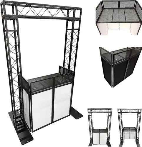 Kit Combo de Arco de Truss Negro 7.6 pies de Altura 5 pies de Ancho + Cabina de DJ con mesa de 40"x20" Kit Todo en Uno de Truss Resistente y Cabina