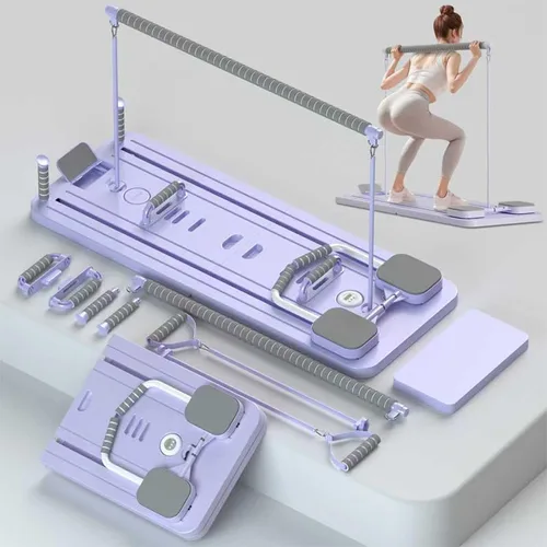 • Diseño versátil: kit de barra de pilates portátil con bandas de resistencia y plataforma de ejercicio para entrenamientos de cuerpo completo, con una barra de altura ajustable para entrenamiento personalizado Compacto y plegable: la plataforma de entrenamiento púrpura se pliega para un fácil almacenamiento y transporte, perfecto para fitness en casa o uso de viaje PLATAFORMA MULTIFUNCIÓN: Tabla de ejercicios antideslizante con anclajes de banda de resistencia y almohadillas de estabilidad para varias posiciones y movimientos de entrenamiento Kit completo: incluye barra ajustable, bandas de resistencia, plataforma de ejercicio y accesorios de entrenamiento para un entrenamiento integral de fuerza y flexibilidad ENTRENAMIENTO DE RESISTENCIA: Las bandas de resistencia dobles permiten el desarrollo progresivo de la fuerza y múltiples variaciones de ejercicio para entrenamientos superiores e inferiores del cuerpo