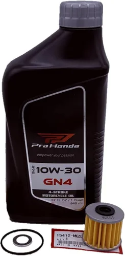 Compatible con: Honda Grom 125 (2022-2025), Monkey 125 (2022-2025) y Super Cub 125 (2022-2025) El kit incluye: 1 cuarto de galón de aceite de motocicleta 10W30 GN4, 1 filtro de aceite OEM 15412-MGS, 1 junta tórica de tapa de filtro de aceite OEM 91302-PA9, 1 arandela de tapón de drenaje OEM de 0.472 in