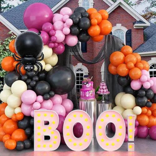 Kit de guirnalda de globos de Halloween: viene con 1 negro de 18 pulgadas, 12 x 10 pulgadas negro, 6 x 5 pulgadas negro, 1 rosa intenso retro de 18 pulgadas, 12 x 10 pulgadas rosa caliente, 12 x 10 pulgadas naranja, 12 x 10 pulgadas rosa pastel, 6 x 5 pulgadas rosa pastel, 12 x 10 pulgadas amarillo pastel, 6 x 5 pulgadas amarillo pastel, 1 globo de aluminio fantasma. 1 globo de lámina de araña. en, 1 globo de papel de aluminio, 1 cadena de globos; 3 dispensadores. ¡Truco o trato! ¿Estás listo para una fiesta de Halloween loca y divertida? Decoración de fiesta de Halloween: el color de nuestro arco de globos de Halloween principalmente en globo negro, naranja y pastel, es la decoración para fiestas de Halloween. Puede crear un ambiente exclusivo para Halloween que seguramente atraerá la atención de los vecinos y los niños que hacen truco o trato. Trae diversión a tu fiesta y crea una magnífica y memorable escena de Halloween para tu familia e hijos. Fácil de instalar: ofrecemos un kit completo de tiras de globos para que sea más fácil colocar el arco de guirnalda de globos de Halloween y no tienes que preocuparte por romper accidentalmente la tira de globos cuando haces un agujero. Y puedes hacer la guirnalda con tu familia y disfrutar de la diversión de decorar la fiesta de Halloween con tu familia. Material de alta calidad: nuestros globos de Halloween negros y rosas están hechos de material de alta calidad, látex no tóxico. resistente, seguro y fiable, no hay necesidad de preocuparse por agrietarse o estallar después de inflar. negro, naranja y rosa intenso son los colores temáticos de Halloween que combinan con el ambiente de Halloween. Es tan llamativo e increíble usar nuestro kit de arco de globos en tu fiesta de Halloween. Varias ocasiones: nuestros globos de látex de Halloween se pueden llenar con helio o aire. Puedes colgarlos con una cuerda o cinta. Ideal para decoraciones de Halloween en interiores y exteriores, fiestas de cumpleaños, bodas, celebraciones de aniversario, etc. Es adecuado para la decoración de fiestas de Halloween para hacer que tu fiesta sea única.