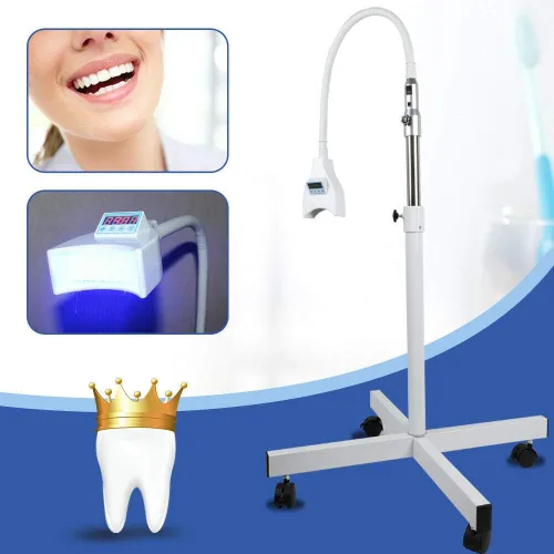 Descripción El acelerador de blanqueamiento dental utiliza la última tecnología LED que puede ofrecer un espectro más amplio de eficiencia de curado y obtener más cuidado y un mejor resultado para el blanqueamiento dental. El acelerador de blanqueamiento dental de luz fría actualizado puede convertir la energía eléctrica en una combinación de luz fuerte. La luz activa el gel blanqueador y oxida el pigmento de los dientes a través de tubos de dentina en el menor tiempo, decolorando los dientes a un blanco brillante tanto externa como internamente. El proceso de 30 minutos asegura una mejora de cinco a catorce tonos. No es un sueño hacer que tus dientes brillen con brillo. Características 1. Pantalla LED fácil de leer y usar. 2. Tiempo de blanqueo sintonizable con preajustes de temporizador controlado por microprocesador. 3. Indicador digital con retroalimentación de audio y función de memoria. 4. Refrigeración por aire centrífuga potente y silenciosa 48w. 5. Cuello de gooxneck flexible fuerte y cabezal giratorio que permite múltiples posiciones. Especificación Fuente de alimentación: entrada Ac110V, 60Hz Esperanza de vida del LED: >50,000 horas. Longitud de onda azul: 465nm-470nm Intensidad lumínica: 9000MCD Potencia: 21W Lente de aumento: 3 veces aumento Refrigeración por aire centrífugo