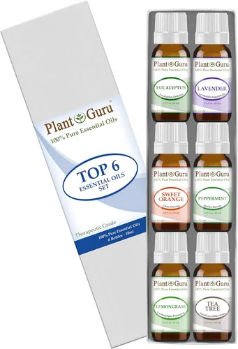 El juego incluye 6 unidades Plant Guru de 0.3 fl oz. Botellas. Árbol de té, lavanda, eucalipto, citronela, menta y naranja dulce Aceites esenciales de la más alta calidad - estricto control de calidad. ! Todos nuestros aceites esenciales son 100% de grado terapéutico puro y natural. SIN INGREDIENTES AÑADIDOS NUNCA SACRIFICAMOS LA CALIDAD POR PRECIO. "ABSOLUTAMENTE NO" SINTÉTICAS, QUÍMICOS, PORTADOR o BASES AÑADIDAS Más de 140 aceites esenciales naturales 100% puros, juegos de regalo y kit de estater en los primeros 6, 14, 32, 64