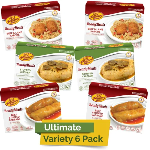 Ultimate Variety - Paquete de 6 unidades: repollo relleno de ternera, pechuga de pollo rellenada, cabaña de carne de res y cordero (microondas, estable en estante), sin lácteos, Kosher Glatt (12 onzas, paquete de 6), no apto para Pascua Fácil de preparar: comidas preparadas, totalmente cocinadas, rápidas y fáciles de preparar y servir. Simplemente desenvuelve y coloca en un microondas durante 2 minutos, o colócalo como está en agua hirviendo, calienta durante 7 a 10 minutos. Viaja mejor: bueno para ir a la comida para una mejor experiencia de viaje. Soluciones de comida para: viajes, senderismo, mochileros, camping, caza, pesca, canotaje, militares, estudiantes de collage, correccional o kit de suministro de preparación de emergencia a largo plazo y preparaciones de almacenamiento de alimentos de supervivencia. Estable: no necesita refrigeración, larga vida útil, se puede almacenar en una zona seca, refrigerada o congelada. Embalado y sellado en una bandeja para microondas. (Garantizamos la calidad de cada comida hasta 3 años a partir de la fecha de fabricación, siempre y cuando no se dañen de ninguna manera). Los mejores ingredientes: nuestros platos están preparados con los mejores ingredientes, luego esterilizados para preservar la frescura, el sabor y la textura. Sin conservantes, sin MSG añadido. Fabricado en los Estados Unidos. GLATT KOSHER: certificado por la Unión Ortodoxa (OU) y el Rabbi Getzel Berkowitz de Kiryas Joel.