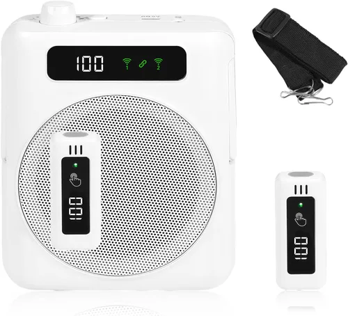 Sonido nítido sin retroalimentación: con un potente altavoz de 2.992 in y un avanzado chip de reducción de ruido DSP, este amplificador de voz inalámbrico ofrece un sonido claro y natural sin distorsión ni silbidos. Su voz se transmite de manera uniforme y fuerte, asegurando un sonido claro incluso en grandes aulas interiores con hasta 300 personas. 【Micrófonos inalámbricos duales】Equipado con dos micrófonos magnéticos de solapa con clip, este sistema admite el funcionamiento de un solo o doble usuario. Disfruta de la comodidad de manos libres sin la molestia de los micrófonos tradicionales de auriculares, incluso durante largas horas de uso. Ideal para profesores, presentadores e instructores de fitness. Conectividad Bluetooth: se conecta fácilmente a teléfonos, tabletas y computadoras a través de Bluetooth para una reproducción de audio inalámbrica suave, perfecto para enseñanza, guía turística, centro comercial y uso al aire libre. Batería de larga duración: este amplificador de voz personal está equipado con una batería recargable de 2000 mAh, y cada micrófono cuenta con una batería de 70 mAh. El amplificador proporciona hasta 12 horas de uso continuo e incluye una pantalla de nivel de batería para un fácil monitoreo de energía. Portátil y fácil de transportar: con solo 10.58 onzas (10.58 oz), el amplificador compacto viene con una correa ajustable para un uso cómodo en la cintura o el hombro.