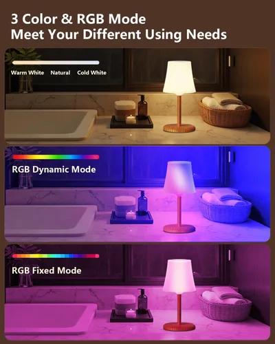 Temperatura de 3 colores + diseño RGB y atenuación continua: satisface tus diferentes necesidades: para diferentes necesidades de uso, estas lámparas inalámbricas recargables tienen iluminación completa y descendente, cada una tiene una temperatura de 3 colores blanco cálido, blanco neutro y blanco frío. 9 luces de modo RGB añaden la diversidad de ocasiones de uso. Función de atenuación del 0% al 100% que te permite ajustar el ambiente de iluminación ideal. Lámparas de mesa portátiles inalámbricas: se iluminan en cualquier lugar: el diseño alimentado por batería permite que esta lámpara inalámbrica se adapte a cualquier lugar y ocasión, especialmente en lugares, no tiene tomas de corriente o apagón y también te permite deshacerte de problemas de cables. Puedes llevar esta lámpara portátil a cualquier lugar. Control táctil e iluminación de 10 a 25 horas: el control táctil fácil de usar agrega comodidad. La respuesta sensible suaviza la operación. 4 horas de carga para 10-25 horas de brillo. Haz que esta lámpara táctil inalámbrica sea adecuada para muchas ocasiones: cena romántica/noche relajada en la terraza/cena al aire libre/picnic. Con función de memoria, esta lámpara funciona con pilas recordará el último modo y brillo. Pantalla impermeable IP54 blanca: Pantalla de plástico ABS con estructura cerrada de sello de silicona, asegúrese de que sea funcionalidad impermeable. La luz cálida dispersa uniformemente en la pantalla de plástico ABS blanco nieve, hace que esta luz portátil sea un gran creador de ambiente. Regalo perfecto: elegante, inalámbrico, portátil, brillo hacen de estas lámparas de mesa un regalo versátil para tus amantes/amigos. También es un regalo ideal para cumpleaños, día de San Valentín, Navidad, oficina en casa, decoración de fiesta, inauguración de la casa, enviar compañero de habitación.