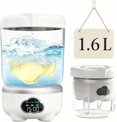 Mini lavadora de 1.6L: con capacidad de 1.6L, esta lavadora portátil es adecuada para lavar ropa pequeña como ropa interior, calcetines, sujetadores, etc. El lavado giratorio de alta velocidad de 360° es eficiente y limpio. ¡Tenerlo liberará tus manos! 3 MODOS DE LAVADO: Esta mini lavadora ofrece 3 modos de lavado: 5 minutos de modo de limpieza suave, 15 minutos de potente modo de limpieza y 1.5 minutos modo de autolimpieza. Puede seleccionar diferentes modos de acuerdo con sus requisitos de lavandería. Simplemente presione el botón correspondiente al modo deseado. Inalámbrico y recargable: esta mini lavadora tiene una batería de 6000 mAh y se puede cargar por USB. Se puede utilizar sin cable después de cargar. Se puede utilizar aproximadamente 160 minutos cuando está completamente cargado. Vale la pena señalar que la carga no debe realizarse mientras se usa. Almacenamiento integrado y pantalla clara: esta lavadora de ropa interior cuenta con un diseño de almacenamiento incorporado añadido y un orificio de drenaje, por lo que es conveniente para transportar, almacenar y drenar. Además, está equipado con una pantalla en forma de nube que muestra claramente el nivel de la batería, el modo y el tiempo. PORTÁTIL Y FÁCIL OPERACIÓN: Esta mini lavadora es de tamaño compacto y no ocupa espacio. Ideal para apartamento, hotel, dormitorio, hogar. No es necesario instalar. Solo tienes que añadir agua, detergente y ropa, y se puede operar con solo presionar botones. Es una gran opción como regalo