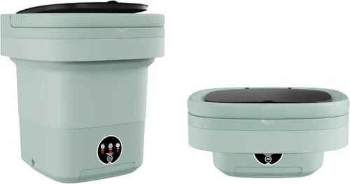 Lavadora portátil compacta para espacios pequeños: esta lavadora portátil está diseñada para apartamentos, dormitorios, casas rodantes, camping y viajes, proporcionando una manera conveniente de lavar pequeñas cargas sin lavanderías compartidas o máquinas voluminosas. Capacidad mejorada de 11 litros con diseño plegable: con una capacidad ampliada de 11 litros, esta mini lavadora permite más ropa por ciclo que las lavadoras compactas estándar, mientras que el cuerpo plegable se pliega fácilmente para guardarlo debajo de las camas, en armarios o equipaje. Cesta giratoria integrada para una eliminación eficiente del agua: la cesta giratoria integrada ayuda a eliminar el exceso de agua después del lavado, haciendo que la ropa sea más ligera y ayuda a reducir el tiempo general de secado de la ropa interior, prendas delicadas y ropa para bebés. Tres modos de lavado inteligentes para las necesidades diarias de lavandería: elige entre lavado normal, lavado rápido o ciclos de centrifugado para limpiar la ropa interior, ropa de bebé, lencería, toallas y otras prendas pequeñas con un rendimiento suave pero eficaz. Ecológico y eficiente energéticamente: diseñada para hogares modernos, esta lavadora compacta utiliza un mínimo de agua y detergente, reduciendo los residuos y costos mientras garantiza una solución de limpieza sostenible Silenciosa, eficiente de energía y fácil de operar: funciona a menos de 30 dB, esta lavadora silenciosa es adecuada para espacios compartidos y uso nocturno mientras utiliza un mínimo de agua y detergente para una solución de lavandería ecológica y rentable. Fácil configuración y diseño fácil de usar: viene con un manual de instrucciones simple para un funcionamiento sin esfuerzo. Solo tienes que añadir agua, detergente y tu ropa, ideal para personas ocupadas, viajeros frecuentes y espacios pequeños
