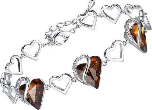 Elegantes pulseras de abalorios: nuestras pulseras estéticas para mujer están diseñadas en Boston y cuentan con preciosos cristales austriacos. Adornadas con piedras de corazón de amor, estas pulseras de moda premium para mujer son una lujosa exhibición de amor. Delicada joyería de piedra natal que dura: esta pulsera de cadena está adornada con piedra curativa de topacio oscuro de 0.5 x 0.6 pulgadas para aliviar el estrés. Está chapado en plata y 7 pulgadas de largo, con un extensor de 2 pulgadas. Cada pulsera de eslabones también está diseñada con un cierre de mosquetón seguro. Para diosas como tú: honra a tu diosa interior con nuestras joyas únicas para mujeres. Presentada por Miss New York – Nicole Kulovany, esta pulsera de cristal es una pieza real y simbólica que revela tu espíritu femenino. Estrictos estándares de seguridad: estas deslumbrantes pulseras para mujer cumplen con los estándares de seguridad rígidos. Nuestras pulseras de cristal también cumplen con las normas europeas REACH. Estas pulseras de piedra de corazón no contienen plomo, níquel o alérgenos. Un regalo pensado para mujeres: ¿Buscas regalos excepcionales de cumpleaños, vacaciones o día de la madre? Cada pulsera de Leafael se almacena en una elegante caja de regalo blanca y plateada en relieve, por lo que es un regalo ideal para las mujeres especiales de tu vida.