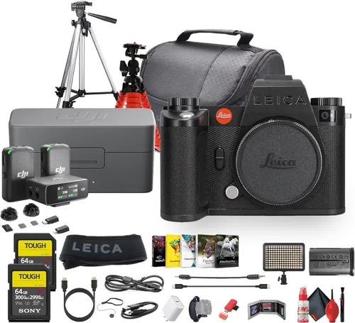Los artículos incluyen: Cámara digital sin espejo Leica SL3-S sin espejo, DJI Mic 2 Sistema de micrófono digital inalámbrico para 2 personas, 2 tarjetas de memoria SF-G TOUGH Series UHS-II SDXC de 64 GB, luz de video LED, trípode para cámara profesional, software de fotografía, bolsa acolchada para cámara, trípode flexible, cable USB-C, kit de limpieza de lujo, adaptador USB-C, cable HDMI, correa de mano para cámara, billetera de tarjeta de memoria, lector de tarjetas de memoria, Cap Keeper Más rápido que nunca: Sistema de enfoque automático híbrido Leica SL3-S: el Leica SL3-S es el modelo más rápido hasta ahora, con su sistema de enfoque automático híbrido y sensor BSI CMOS de fotograma completo de 24 MP, que admite disparos continuos de hasta 30 fps con enfoque automático completo. Este avanzado sistema es perfecto para sujetos en movimiento rápido, proporcionando un seguimiento y precisión sin igual. Ya sea que estés capturando deportes o vida silvestre, el SL3-S garantiza que cada momento esté congelado con una claridad perfecta sin comprometer la velocidad o el enfoque. Sensor de fotograma completo de 24 MP con procesador Maestro IV: equipado con un sensor BSI CMOS de fotograma completo de 24 MP y el procesador Maestro IV, el Leica SL3-S ofrece una precisión de color impresionante y un excelente rendimiento con poca luz. Con 8 GB de memoria intermedia, ofrece una calidad de imagen excepcional a 24MP en formatos DNG y JPEG. El resultado es una cámara versátil adecuada para una amplia gama de entornos de disparo, asegurando que nunca se pierda la toma perfecta con detalles y colores impresionantes. Grabación ilimitada de 6K Open Gate para profesionales: Para los camarógrafos que buscan flexibilidad, el SL3-S ofrece grabación interna ilimitada de 6K Open Gate, lo que lo hace ideal para trabajos de postproducción. La relación de aspecto 3:2 de tamaño completo permite la libertad creativa en el recorte y reencuadre, al tiempo que mantiene la integridad de la imagen de alta calidad. Admite el uso de lentes anamórficas sin sacrificar los detalles, y sus capacidades de video incluyen grabación RAW externa de 5.9K para un control creativo y flexibilidad definitivos. Diseño avanzado con estabilización y conectividad de grado profesional: el SL3-S cuenta con un cuerpo robusto y totalmente metálico con IP54, lo que garantiza que está diseñado para disparos exigentes. La estabilización IBIS integrada de 5 ejes proporciona hasta 5 paradas de reducción de sacudidas, lo que permite disparar de mano con resultados nítidos. Para una producción de video sin problemas, el diseño UX actualizado, la pantalla táctil inclinable y el visor EyeRes mejoran la usabilidad general tanto para fotógrafos como para videógrafos.
