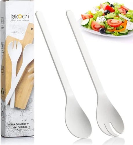 LEKOCH Servidores de ensalada a base de plantas, juego de tenedor y cuchara, apto para microondas y lavavajillas, utensilios para Navidad, cocina,