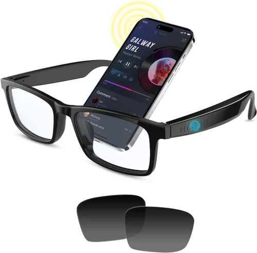 【Diseño de Audio de Oído Abierto】¡Disfruta de audio claro sin molestar tu entorno! Las gafas de audio Bluetooth con altavoces de oído abierto ofrecen un sonido claro mientras mantienen los sonidos ambientales audibles, lo que las hace ideales para correr, ir de compras o trabajar en un entorno ajetreado. 【Dos lentes: Protección anti-luz azul y UV400】Las lentes de estas gafas inteligentes unisex son desmontables, y proporcionamos un par de lentes de sol como regalo. Puedes usar las lentes antiluz azul en interiores y reemplazarlas con lentes de sol al aire libre, logrando dos usos con un solo par de gafas. Integración de asistente táctil inteligente y de voz: cambia fácilmente pistas o responde llamadas con controles táctiles intuitivos en gafas Bluetooth con altavoz. También es posible despertar el asistente de voz (configurar recordatorios, verificar el clima o ver mensajes) a través de las gafas de audio inteligentes. Perfecto para multitareas que valoran la eficiencia. 【Bluetooth 5.3 y resistente al agua IPX5】Las gafas inteligentes Bluetooth con tecnología Bluetooth 5.3 permiten un emparejamiento más rápido, transmisión estable y un rango de transmisión más amplio. La construcción con clasificación IPX5 resiste el sudor, la lluvia ligera y las salpicaduras, lo que las hace ideales para entrenamientos de alta intensidad o para correr al aire libre. Batería de larga duración y diseño elegante: estos lentes inteligentes con Bluetooth pueden durar hasta 5 horas de reproducción continua o más de 100 horas de tiempo de espera después de 1.5 horas de carga, satisfacen el trabajo normal o las necesidades diarias. El diseño de las gafas de música está de moda y se puede combinar perfectamente con diferentes prendas casuales o profesionales.