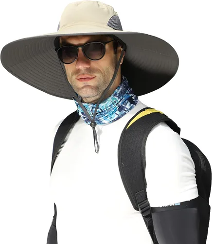Leotruny Sombreros de ala ancha para hombre UPF50+ sombrero impermeable transpirable para pesca, senderismo, camping