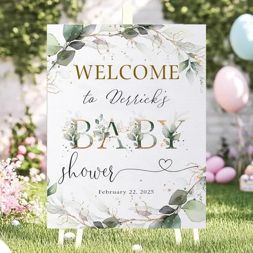 | Hay texto preimpreso | Bienvenido al Baby Shower de Derrick, 22 de febrero de 2025 |