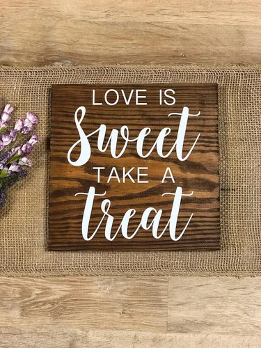 | Hay texto preimpreso | Letrero de madera de boda Love is Sweet Take A Treat |