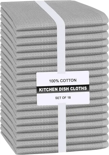 lino,algodón Calidad premium: construcción robusta, alta calidad, baja pelusa, extremadamente absorbente, duradera y de secado rápido. Paquete económico de 18: contiene 18 paños de cocina a granel que miden 12 x 12 pulgadas con un práctico lazo para colgar. Paños de algodón para platos: 100% algodón, lo que hace que estas toallas sean duraderas y resistentes para todas las tareas del hogar. Suaves y absorbentes: estos paños de cocina son ideales para tus necesidades diarias de secado, limpieza y cocina. Fácil cuidado: estos paños de cocina son lavables a máquina y aptos para secadora para un fácil cuidado. Nuestro algodón premium es duradero y duradero para muchos lavados. Estas son una alternativa sostenible a las toallas de papel.