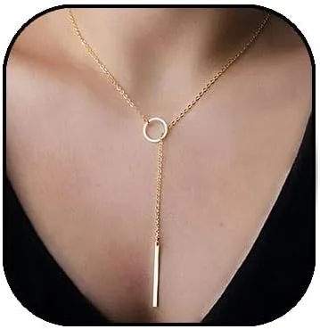 LINONKEY Lariat - Collar de oro para mujer, moderno, chapado en Y, collar circular de oro de 14 quilates, no se deslustra, delicado collar de oro de