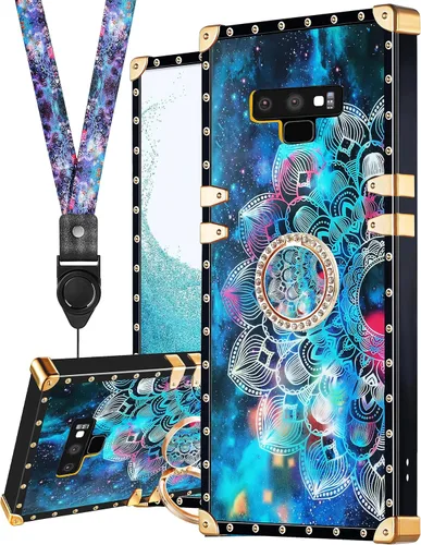 Loheckle Funda para Samsung Galaxy Note 9 para mujer, diseño con soporte de anillo y cordón, elegante funda de lujo con mandala para Samsung Note 9