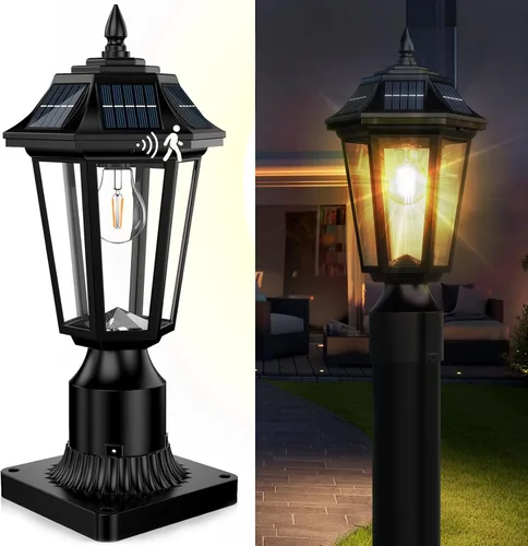 Carga solar rápida de 360° con diseño resistente a la intemperie: equipadas con 6 paneles solares de silicio mejorados, estas luces solares para postes exteriores logran una carga completa en 6-8 horas soleadas. Las luces de poste solar con clasificación IP65 para exteriores con carcasa impermeable aseguran un funcionamiento continuo de anochecer a amanecer incluso durante días nublados. (Se recomienda carga inicial de luz solar directa de 8 horas) Ahorro de energía y ahorro de costos: alimentadas por energía solar, las luces solares para postes ahorran en facturas de electricidad al tiempo que ofrecen una solución de iluminación elegante y ecológica. Cargado de 6 a 8 horas durante el día y el brillo suave duró de 8 a 10 horas al amanecer. (Nota: El tiempo de trabajo real y la duración de carga dependen de la intensidad de la luz solar) Control inteligente de sensor de movimiento de 3 modos: Diseñado para la versatilidad de la lámpara de poste solar para exteriores: Modo de seguridad (100% de brillo activado por movimiento), Modo Eco (detección híbrida + 30% de brillo tenue en espera) y Modo toda la noche (brillo constante del 30%). Pulsa el botón para cambiar los modos de ciclo; mantén presionado 3 segundos cuando esté cubierto para alternar la energía 2 opciones de montaje y fácil de instalar: estas luces de poste alimentadas por energía solar no requieren cableado, vienen con base de montaje en pila. Se puede instalar directamente en un poste de 3 pulgadas, y también se puede instalar fácilmente en un poste de madera de 6x6 o fijarse a cualquier superficie plana mediante la base de montaje en muelle (El producto incluye la base de montaje, el poste largo no está incluido.) Durabilidad resistente a la intemperie sin complicaciones: construido como poste de lámpara solar con materiales resistentes a la corrosión. Solo requiere limpieza estacional del panel. Sobrevive a la lluvia intensa/nieve para un rendimiento de luces de poste al aire libre durante todo el año Excelente servicio: si tienes alguna pregunta o inquietud durante este proceso, puedes ponerte en contacto con nosotros por correo electrónico en cualquier momento, haremos todo lo posible para resolver el problema por ti