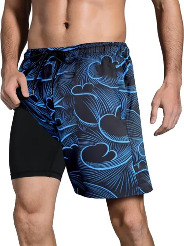 LUCOWEE Traje de baño para hombre, cómodo forro de compresión, bolsillos con cremallera, secado rápido, entrepierna de 7 pulgadas