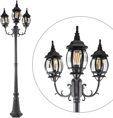 【CON CABLE】: Esta luz de poste está cableada, no es alimentada por energía solar. Diseño clásico de poste de lámpara: diseñado con una construcción duradera de aluminio fundido resistente al óxido con cristales curvos transparentes para uso en exteriores en todas las condiciones climáticas. Añade un estilo tradicional e interés visual al exterior de tu hogar. Las luces de poste para exterior te brindarán una experiencia de decoración diferente y más brillo para tu camino a casa. 【FÁCIL DE INSTALAR】: Nuestra luz de poste exterior requiere 3 bombillas E26 (bombillas no incluidas). Puede instalar la luz de calle exterior con 3 bombillas de máximo 100W (LED, incandescente, de llama, etc.) ), que se puede encontrar fácilmente en cualquier ferretería. El cabezal y el poste están todos incluidos, y los accesorios de montaje y una instrucción de ensamblaje están incluidos para su fácil instalación. Resistente a la intemperie: nuestra lámpara de poste para exteriores está hecha de aluminio que ayuda a soportar muchas condiciones climáticas, lo que te permite no preocuparte por la lluvia, la nieve, el viento y las heladas. El diseño cableado es perfecto para la instalación cerca de entradas, caminos, cubiertas, jardines, etc. Servicio de alta calidad: ofrecemos servicio posventa las 7 x 24 horas. Póngase en contacto con nosotros si surge algún problema.