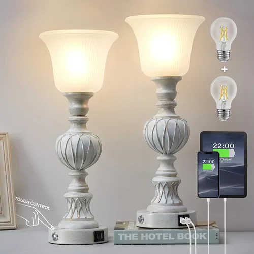 Luvkczc Juego de 2 lámparas táctiles para sala de estar, lámparas de noche de 3 vías con pantalla de vidrio, color blanco lavado